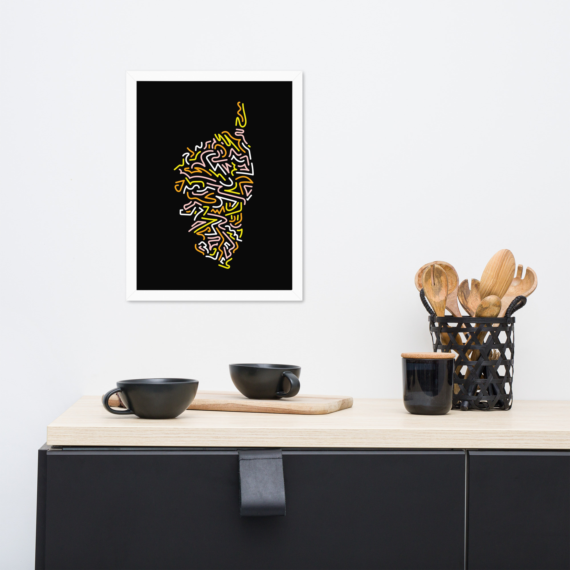 Ce poster encadré, imprimé sur du papier de haute qualité, avec une finition en partie brillante et en partie mate, fera sensation dans n’importe quelle pièce.